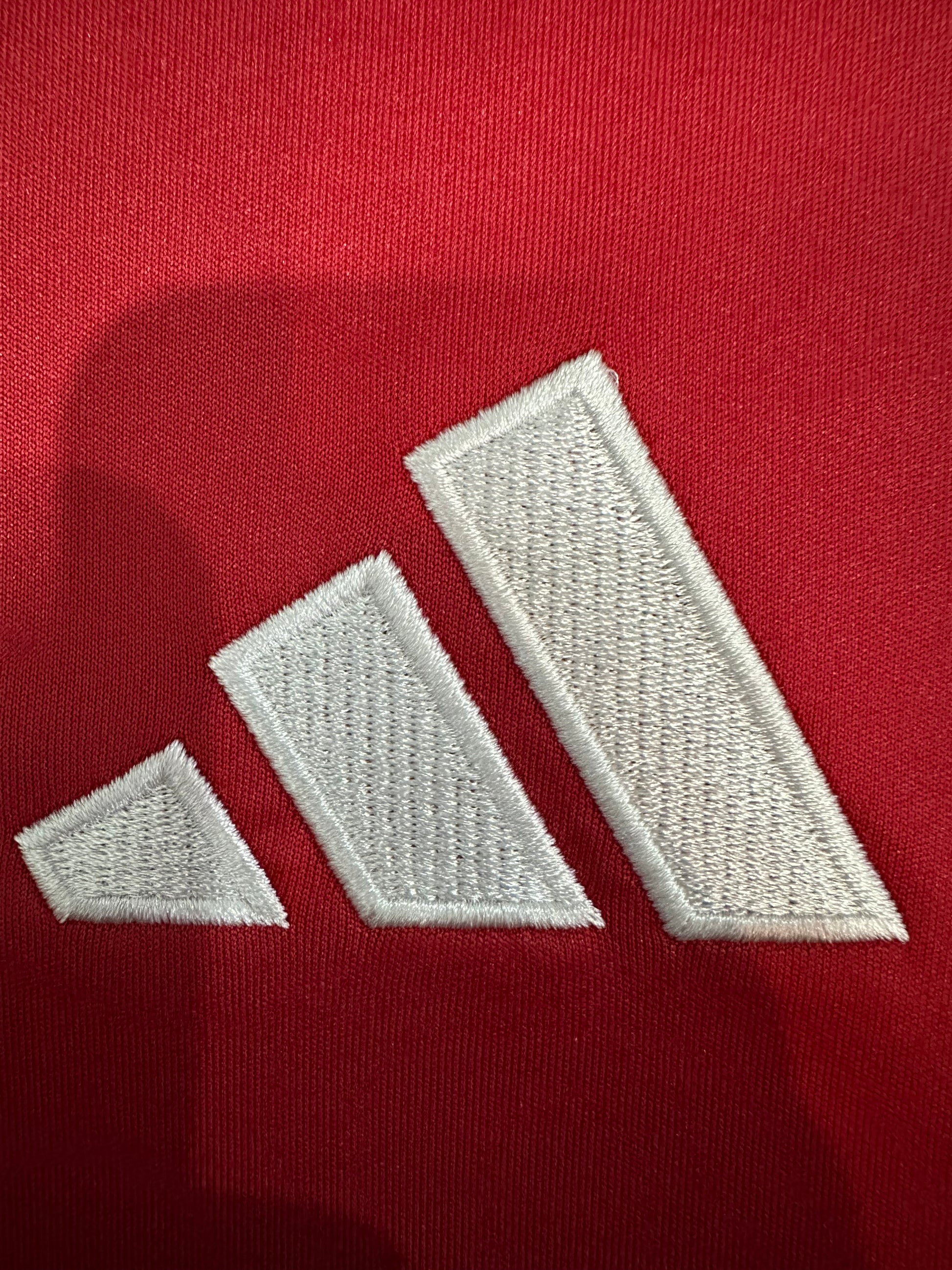 The Manchester United 2023/24 Home Kit blends heritage with modern design. Featuring the club’s iconic red base with bold orange side accents, this jersey captures the fire and energy of Old Trafford.
